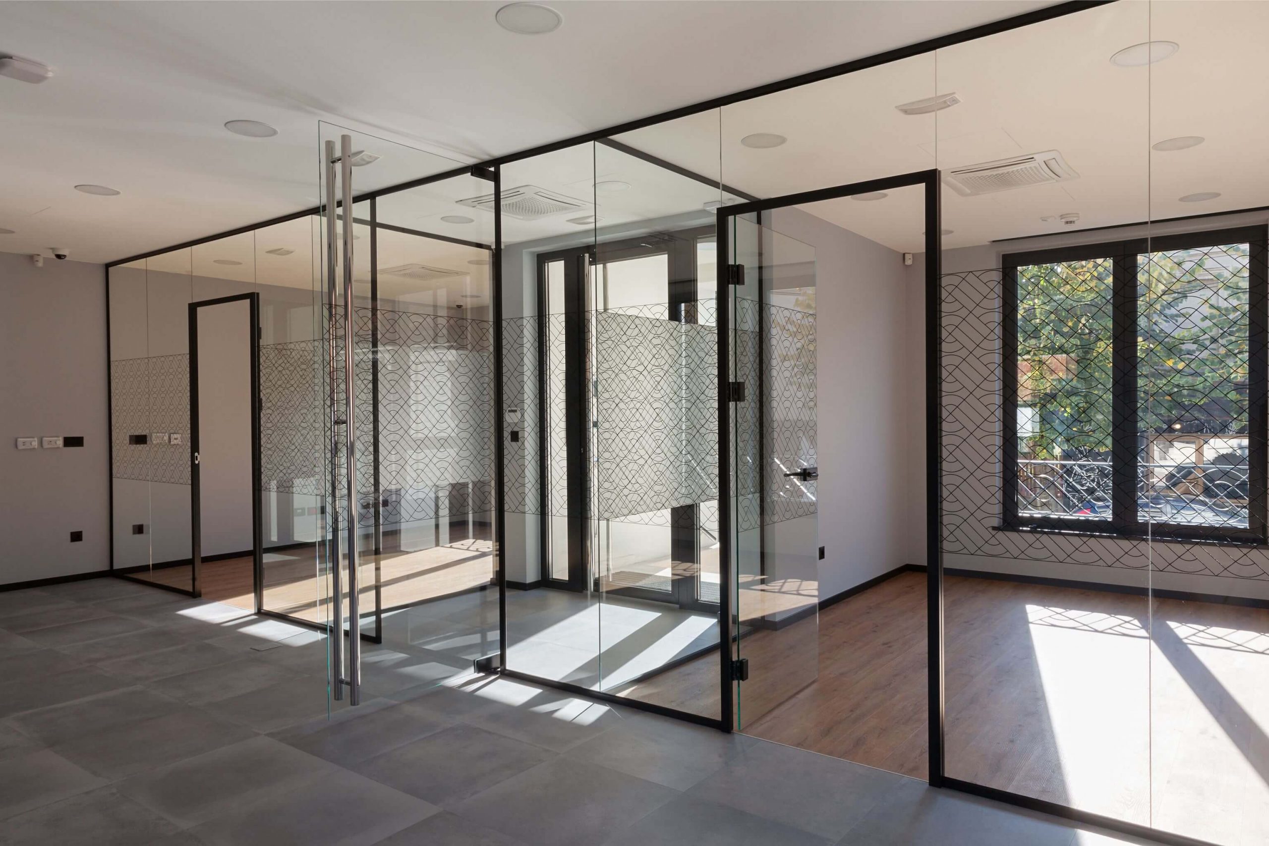 En simple vitrage ou double vitrage, ce produit peut être personnalisé avec de la vitrophanie. Les cloisons vitrées peuvent être équipées de portes en verre, de portes vitrées avec cadre aluminium ou bien une simple porte en bois.
